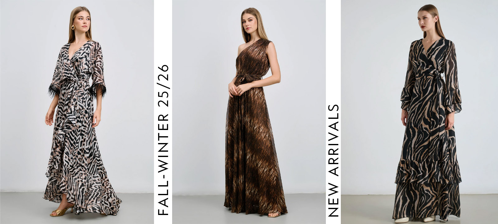 Φόρεμα Open Fashion, midi, με μανίκια 3/4 εμπριμέ σε σκουρόχρωμες αποχρώσεις και σκίσιμο στο πλάι ..